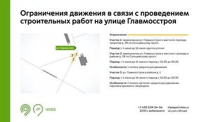 На некоторых отрезках Проектируемого проезда № 7553 и улицы Татьянин Парк будут недоступны для движения 1-2 полосы с 24 октября …