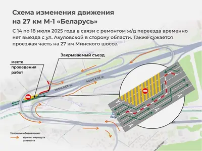 На 27 км трассы М-1 «Беларусь» будет проводиться капитальный ремонт железнодорожного переезда.
