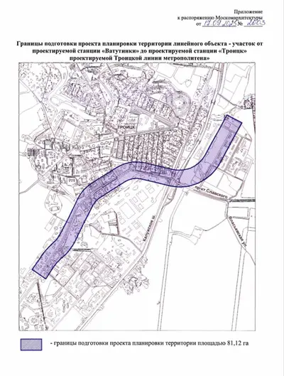 МКА выпустила распоряжение о границах планировки от станции метро «Ватутинки» до станции «Троицк»