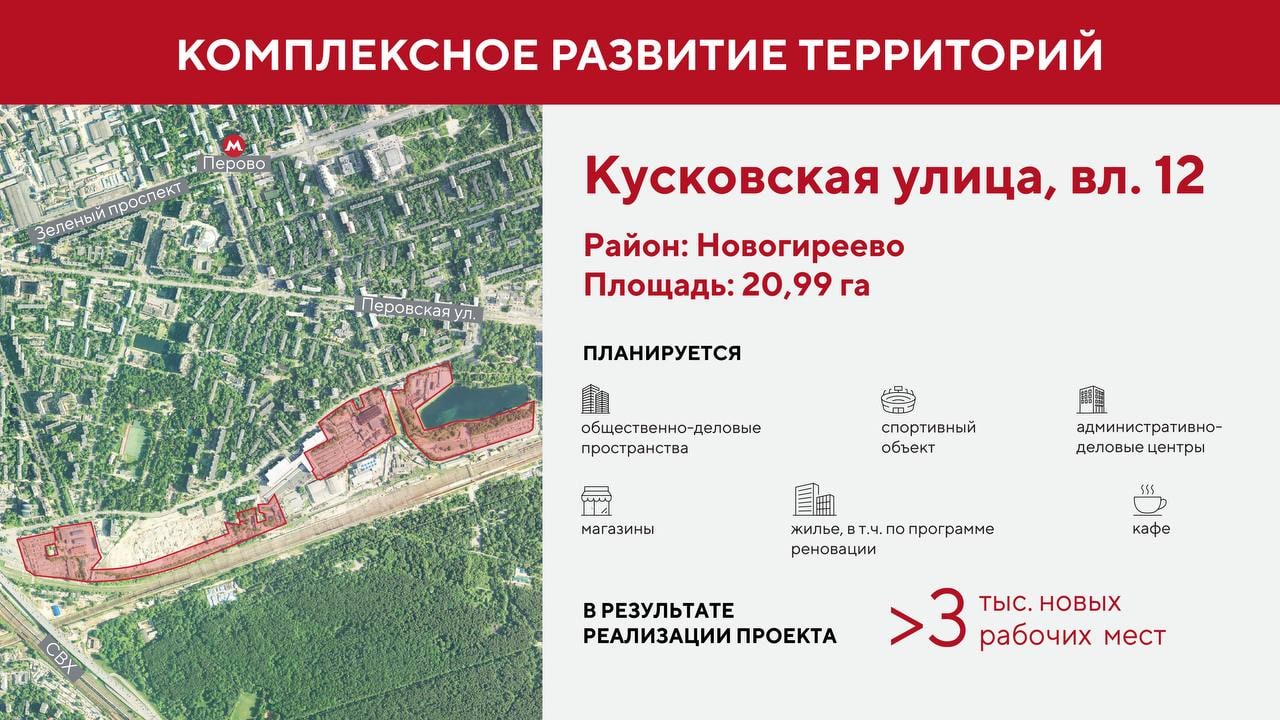 Сейчас на Кусковской, вл. 12 идет строительство жилого комплекса по программе реновации на месте бывшей овощебазы. Но этот проект не относится к КРТ.