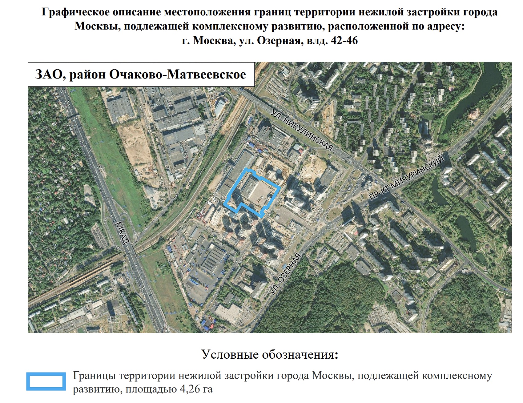 Речь идет о земельном участке около метро «Озерная» Солнцевской ветки. Здесь планируется возвести новый жилой комплекс по программе КРТ площадью 53 500 м2 и образовательное учреждение на 750 мест на Малой Очаковской улице, вл. 4.