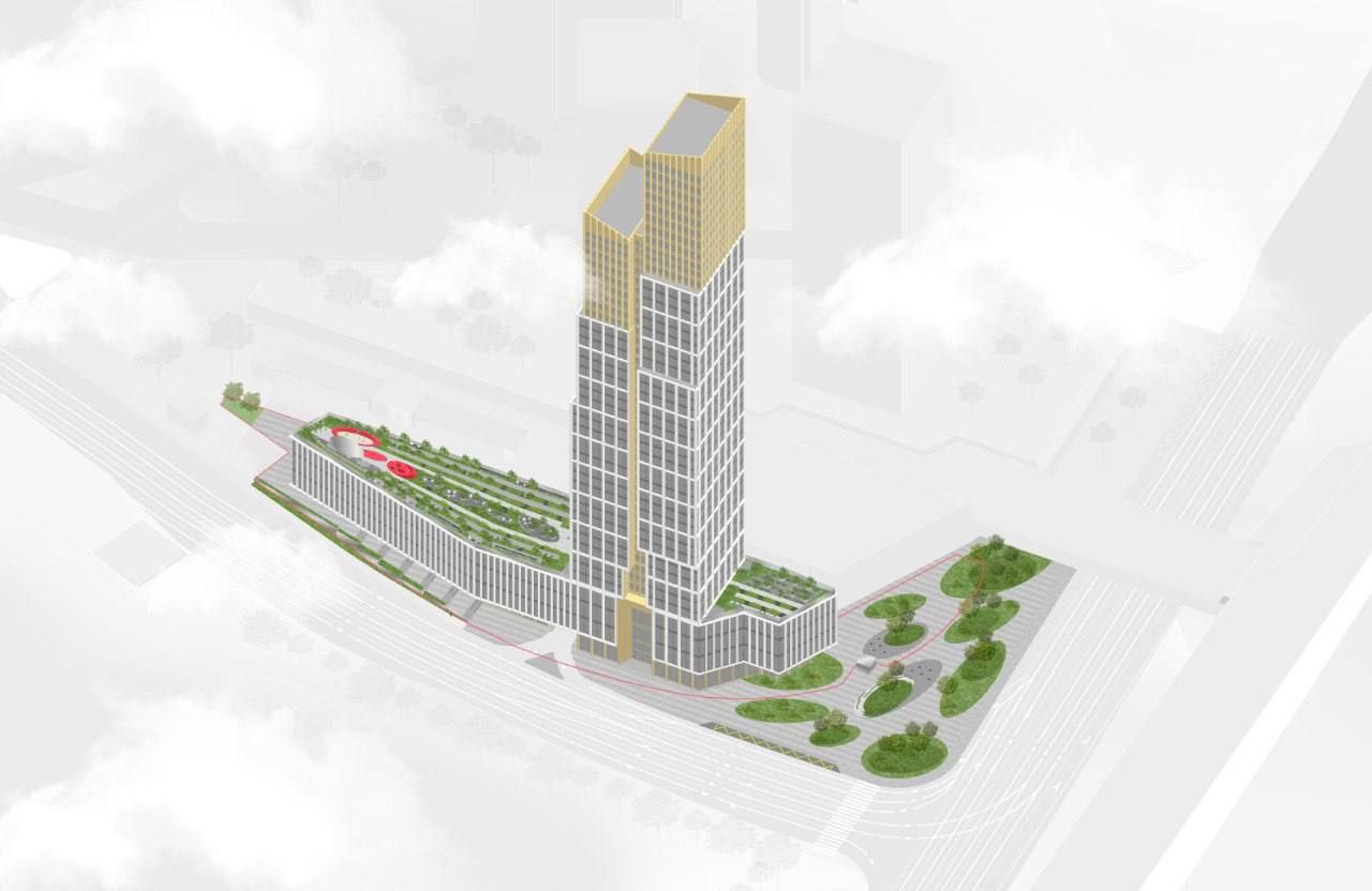 - Здание будет возведено на стилобате, где разместятся торговые площади.