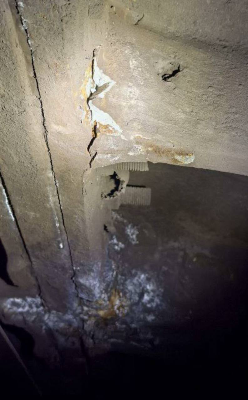 Тоннель сильно сместился, а по тюбингам пошли трещины. Это видно на фотографиях. Стройка идет с 2023 года. При разрытии котлована для жилого дома, тоннель просел больше чем в 2,5 раза от допустимого.
