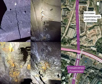 Тоннель сильно сместился, а по тюбингам пошли трещины. Это видно на фотографиях. Стройка идет с 2023 года. При разрытии котлована для жилого дома, тоннель просел больше чем в 2,5 раза от допустимого.