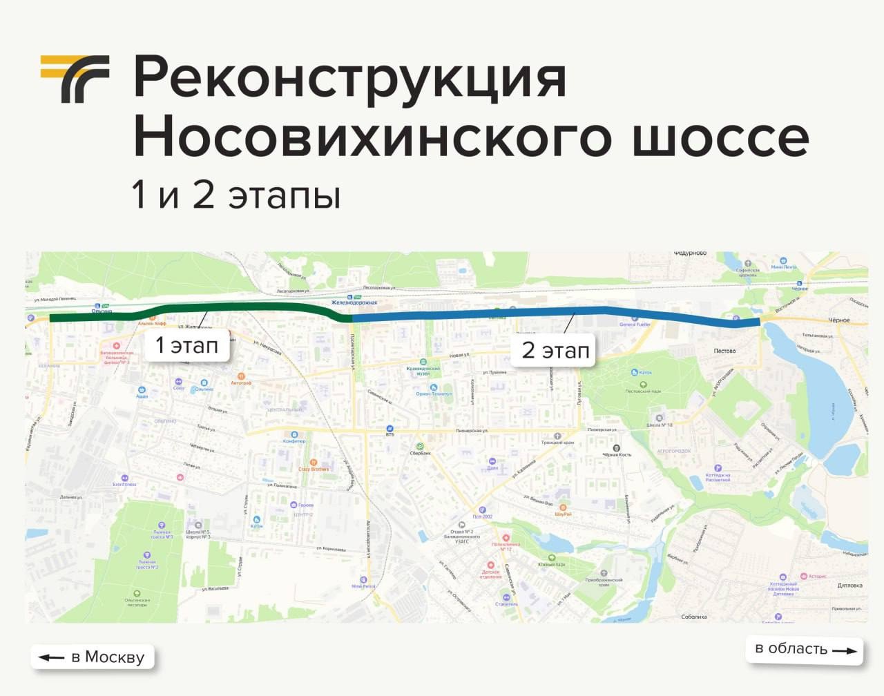 Реконструкция шоссе в Балашихе — от ул. Керамической до ул. Пролетарской, что между ж/д станциями «Ольгино» и «Железнодорожная».