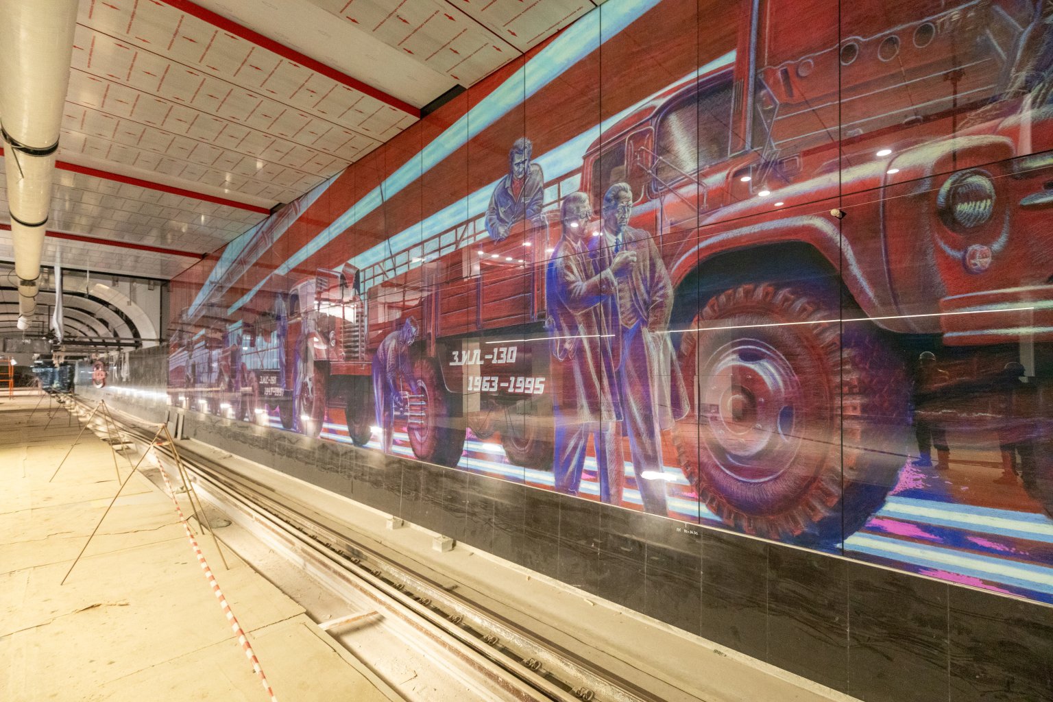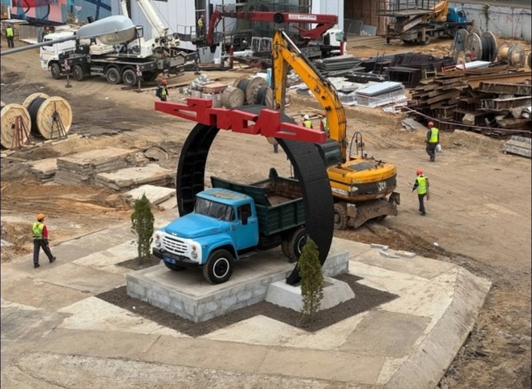 Валерий Крайнев опубликовал снимок уже установленного самосвала ЗИЛ. Он располагается около будущего входа на станцию.