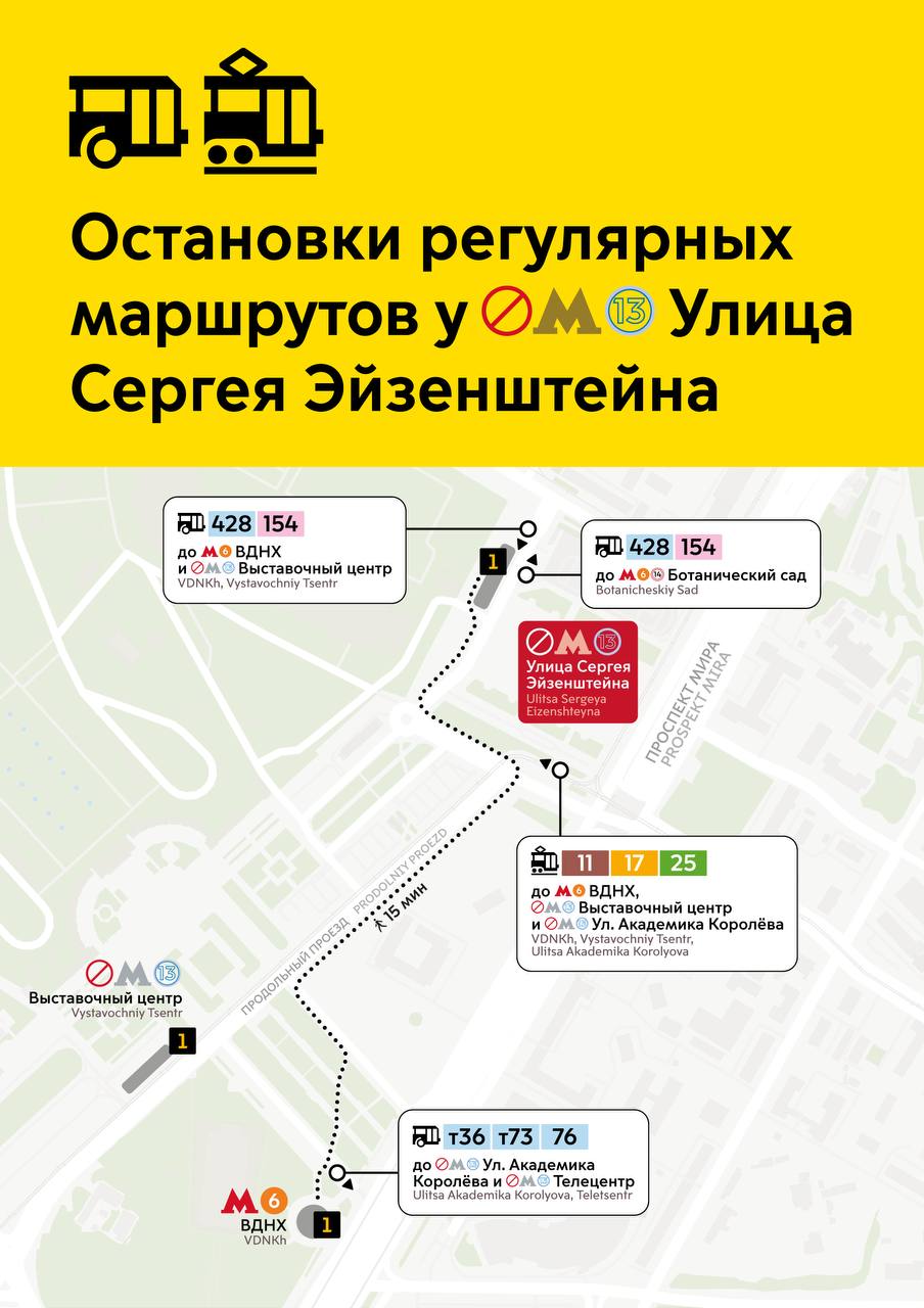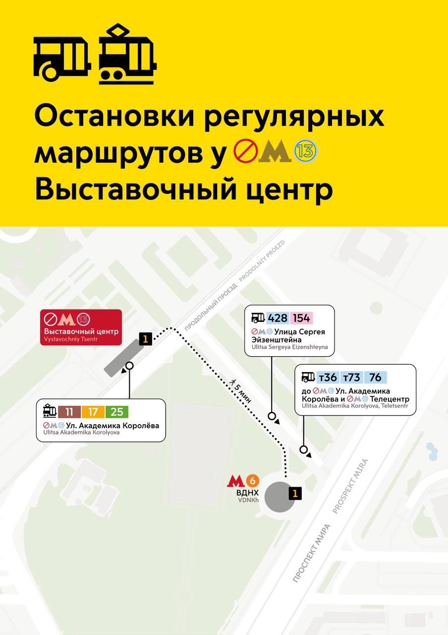 5 минут ходьбы до станции метро ВДНХ. Трамваи 11, 17, 25; автобусы 428, 154; троллейбусы т36, т73, 76.