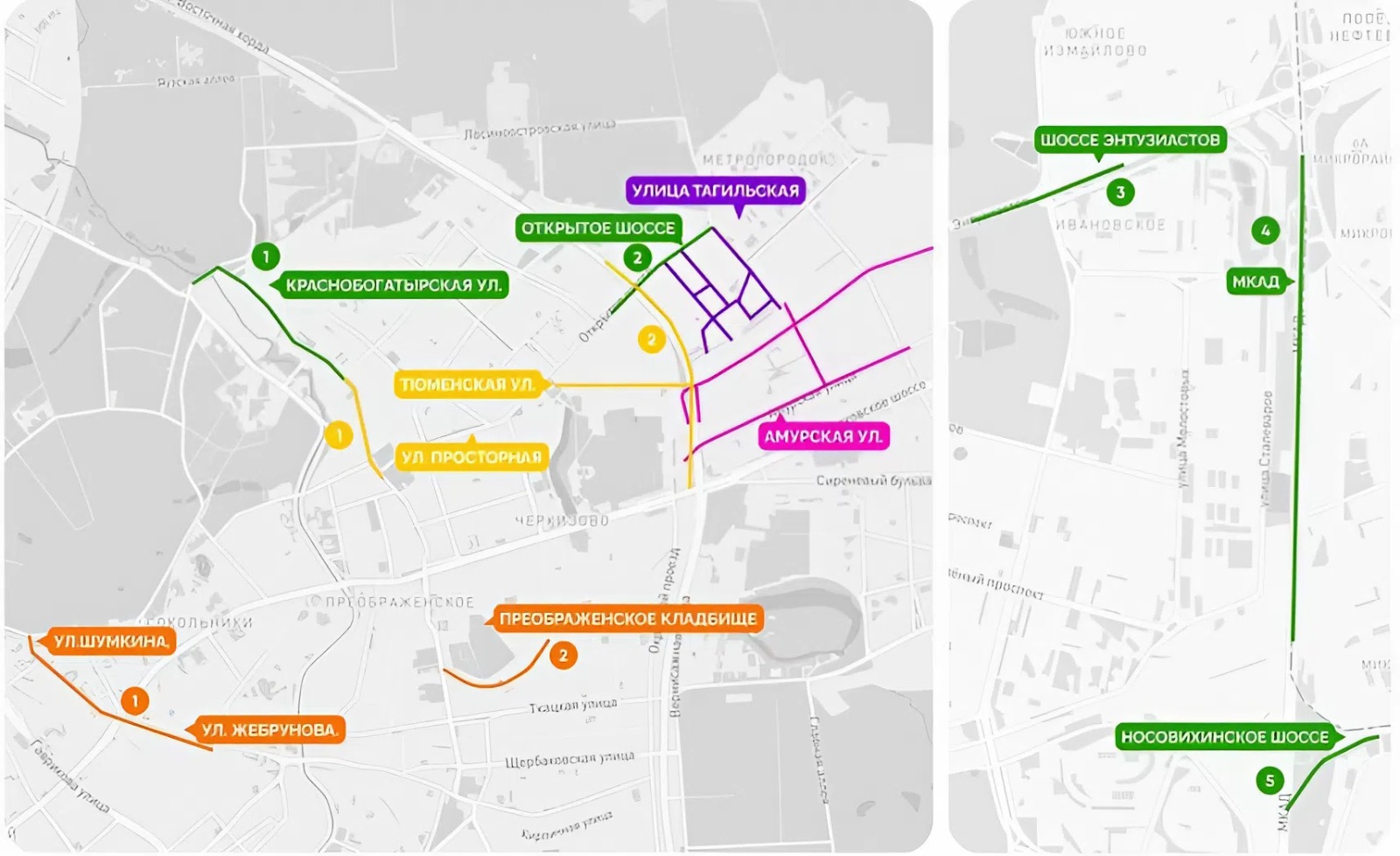 - Глобальная реконструкция Амурской улицы и соединение с круговой развязкой у Восточного вокзала. А также эстакады с СВХ на Щелковском шоссе.