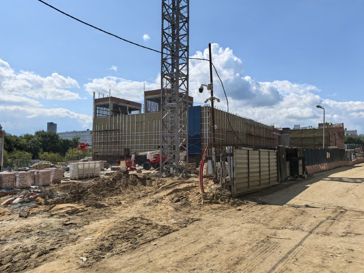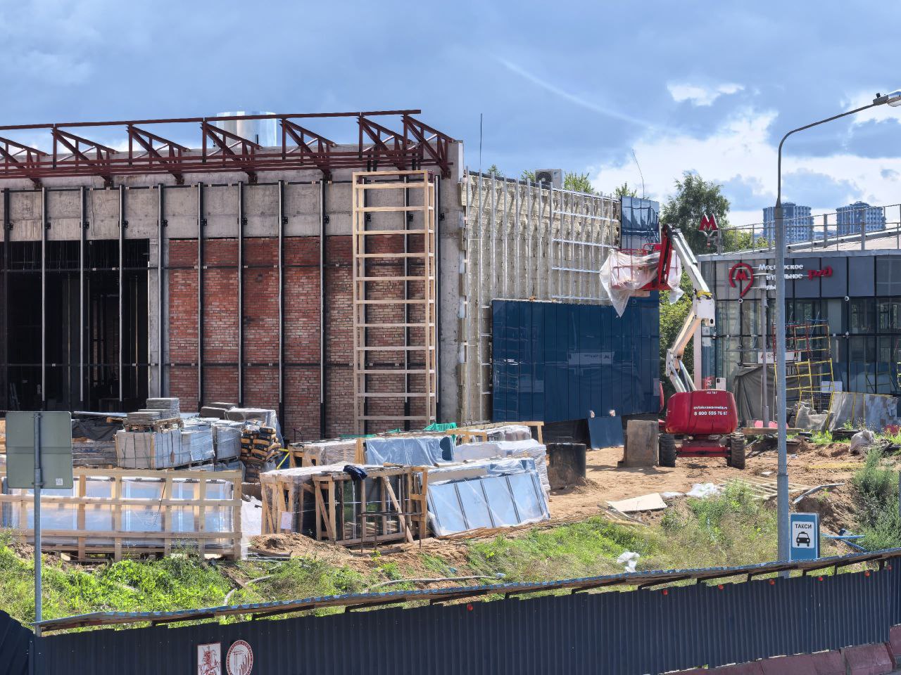 На данный момент на станции идет монтаж панелей отделки на фасаде обоих наземных вестибюлей. Началось мощение прилегающей территории плиткой.