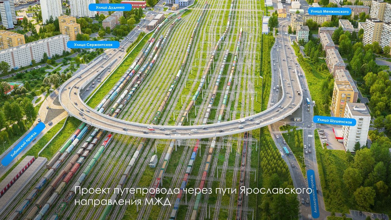 Длина путепровода будет 370 метров и продлится от Анадырского до Хибинского проезда и свяжет Ярославское и Дмитровское шоссе.