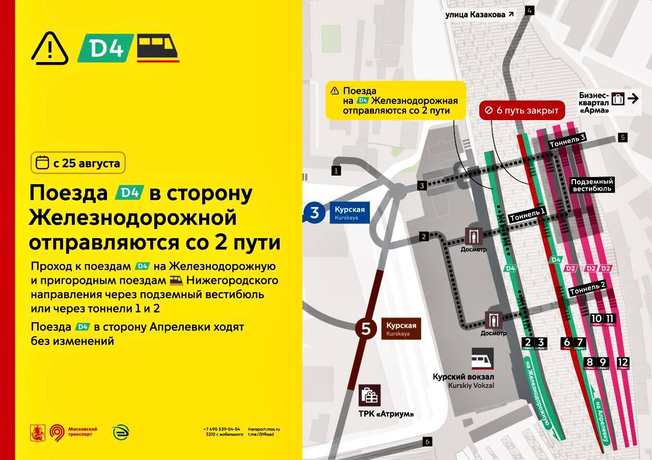 Поезда в сторону «Железнодорожная» отправляются со 2 пути, 6 путь закрыт. Схема прохода на схеме от Дептранса.