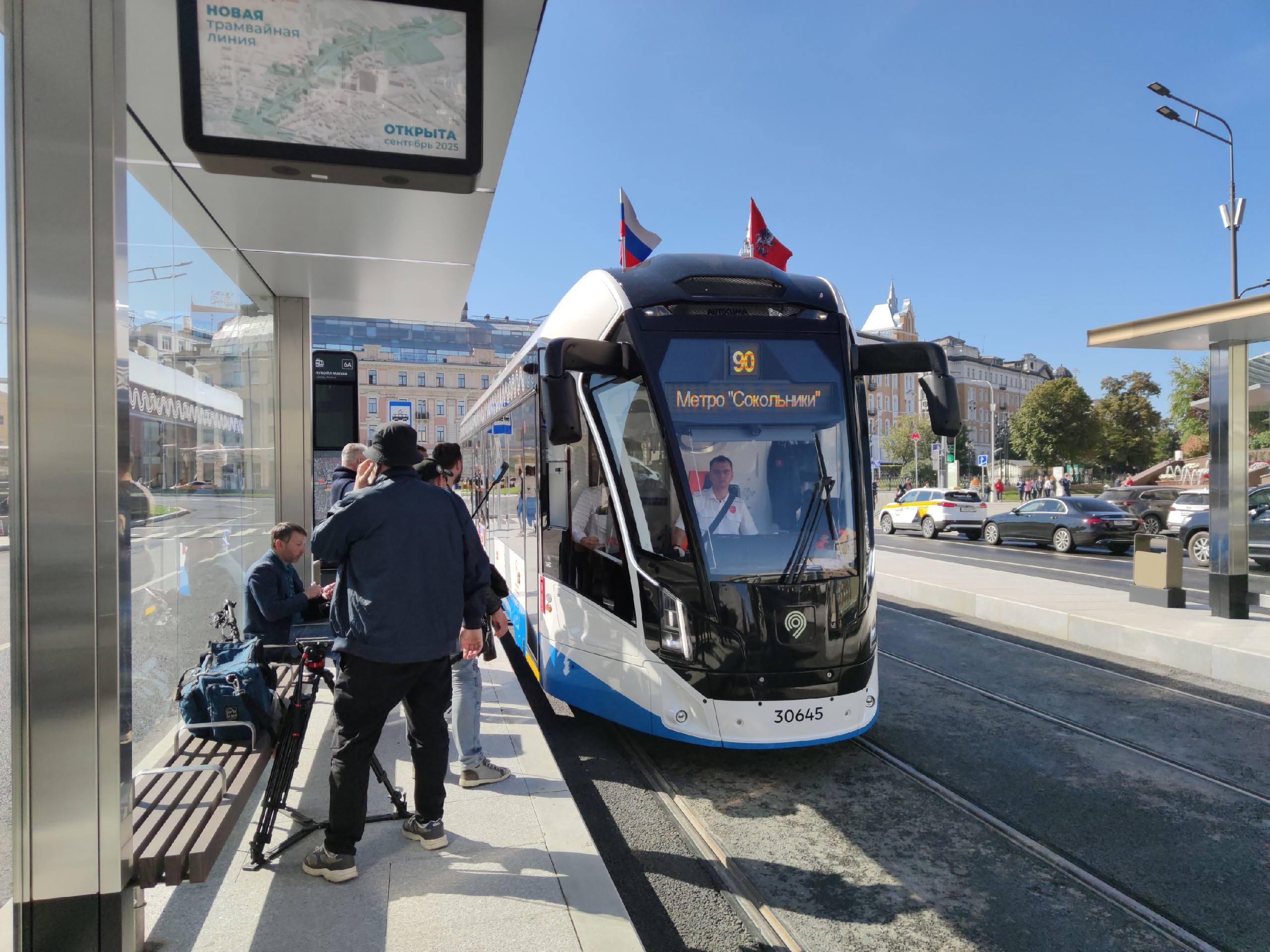 Сегодня хорошее событие в мире трамвайного сообщения – построена новая ветка трамвая прямо по проспекту Сахарова, в центре города. Сама по себе она, может быть, небольшая – 2 км, – но очень важная. Почему очень важная? С помощью этой линии удалось соединить Павелецкий вокзал с площадью трех вокзалов.