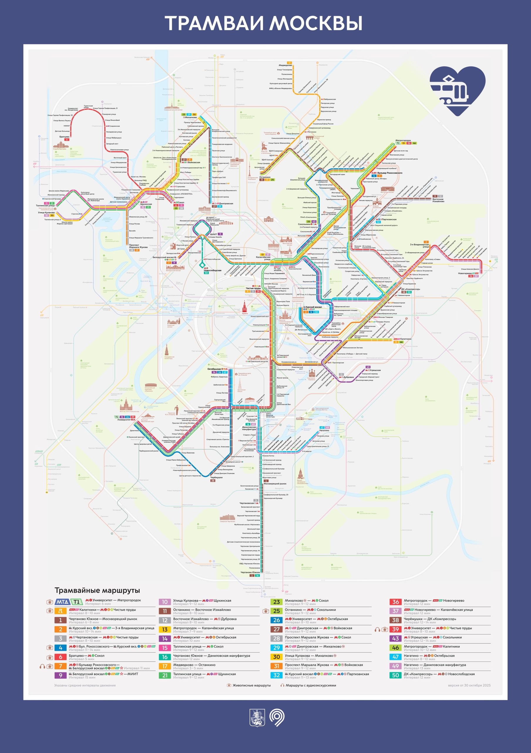 После запуска перового Московского трамвайного диаметра - Т1, Единый транспортный портал опубликовал новую схему всех маршрутов столицы.