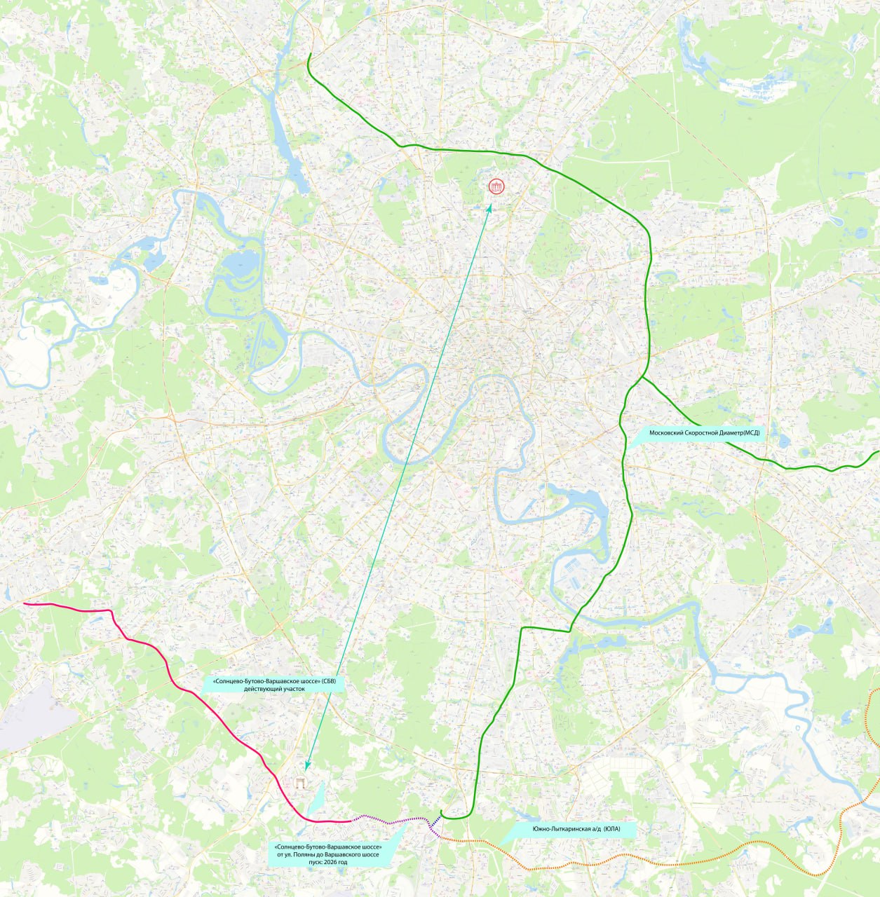 Дорога будет соединена с Московским скоростным диаметром (МСД). Движение по связке между магистралями планируют открыть одновременно с вводом в эксплуатацию пятого участка трассы от улицы Поляны до Варшавского шоссе.