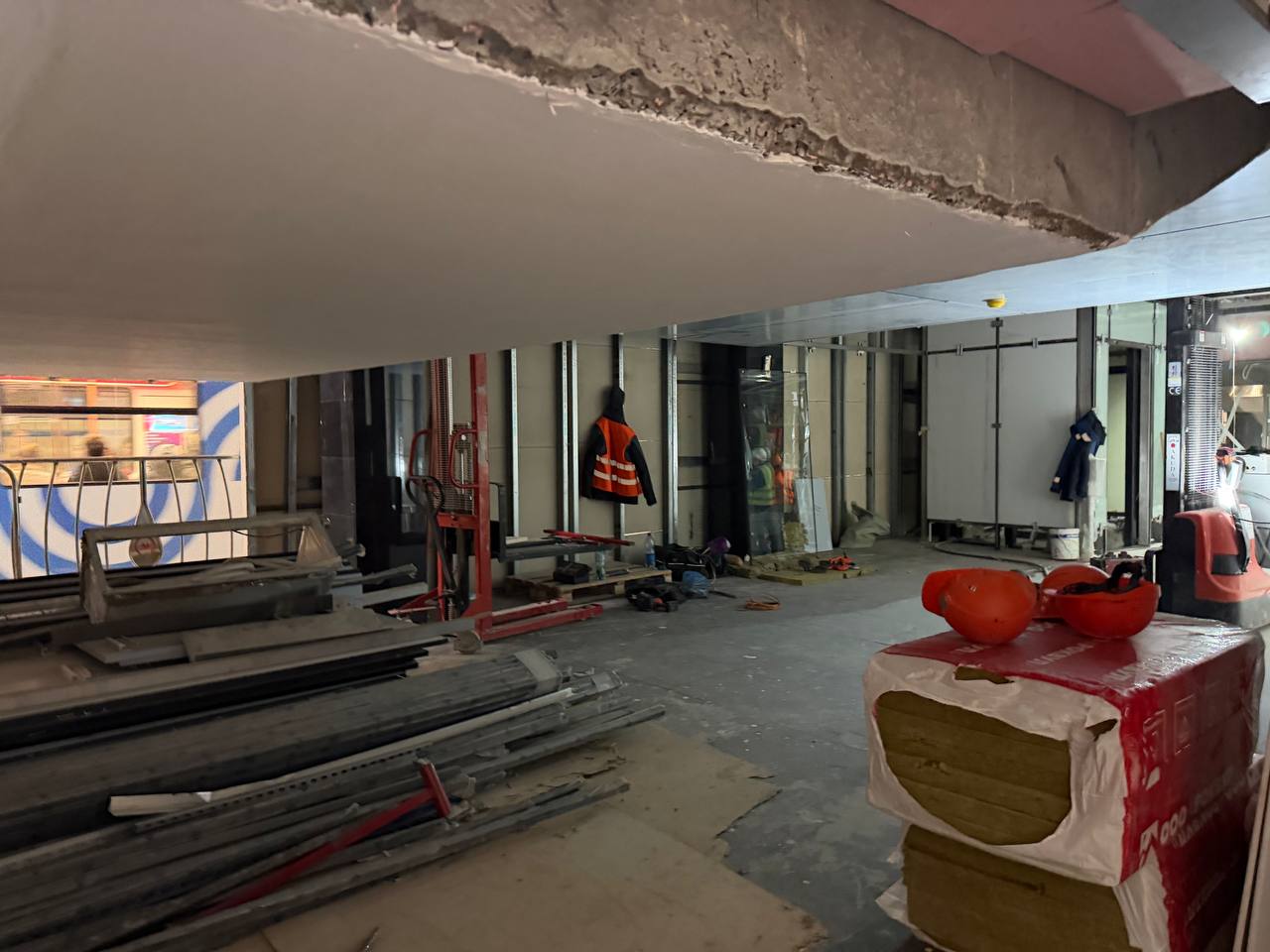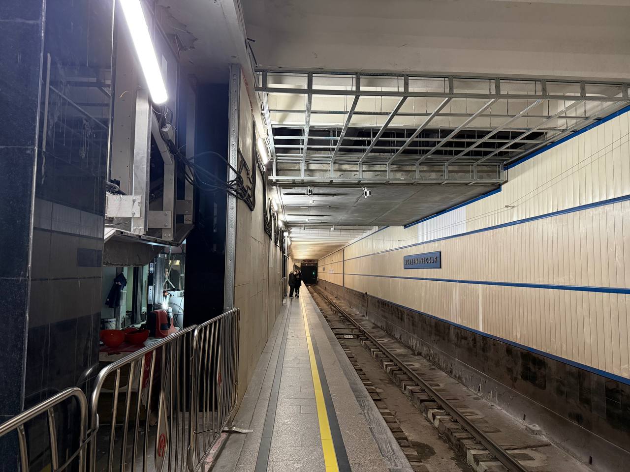 Теперь на месте начат демонтаж защитных конструкций. Потолок ещё не восстановлен, под лестницей лежит много строительных материалов, внутри работает освещение. Вероятнее всего, пересадка может начать открыться до конца декабря 2025. Фотографии с места.