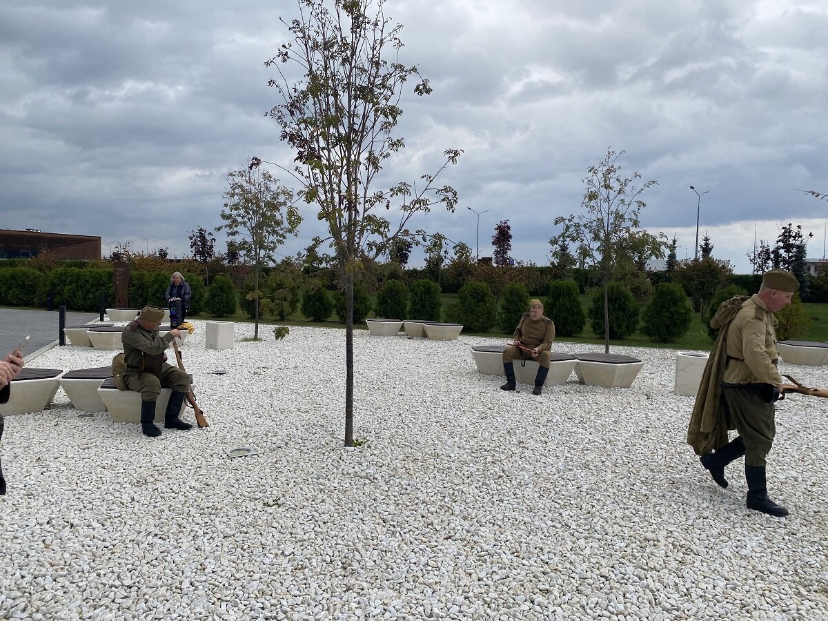 28 сентября на площадке Ржевского мемориала Советскому солдату — филиала Музея Победы посетители и гости увидели театрализованную постановку «На привале». Участниками мероприятия стали около 100 человек.