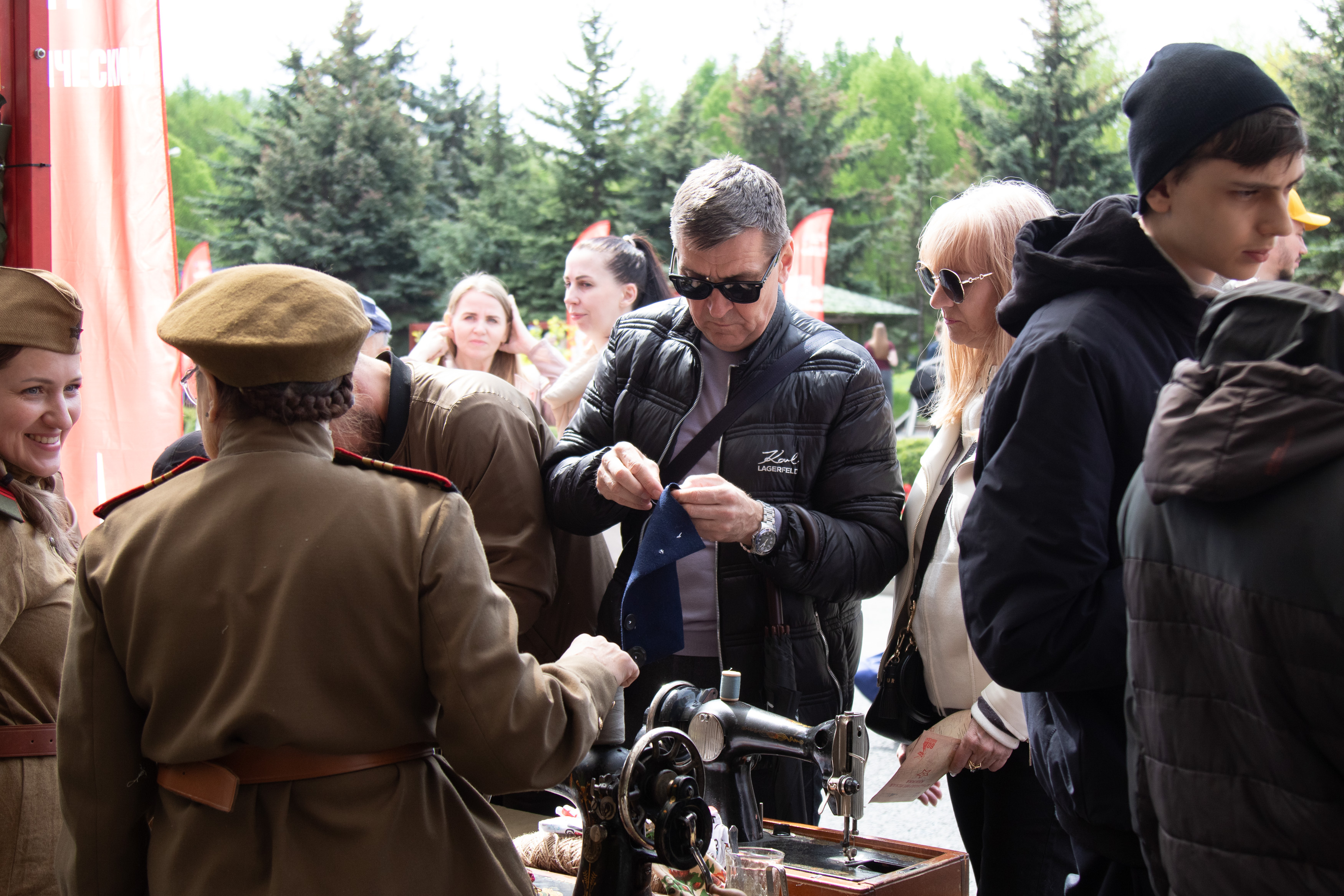 Для посетителей Парка Победы работали 80 интерактивных площадок, где их встречали реконструкторы в военной форме и костюмах 1940-х годов. Они рассказывали, что носили советские бойцы в вещмешках, как работали полевые госпитали, научили метать гранаты и собирать макеты оружия. Также можно было примерить настоящее обмундирование парашютистов.