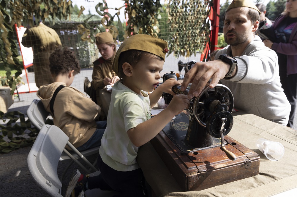 Посетителей ждали мастер-классы «Что у солдата в вещмешке?», «Письмо защитнику Отечества», интерактивные локации «Военные регулировщики», «ZAрница», «Курс молодого бойца». Около станции метро работала фотозона с военным ретроавтомобилем 1940-х годов. Также на «Площади мастеров» все желающие могли отчеканить памятную монету. Для гостей парка была организована большая музыкальная программа, в которую вошли песни военных лет. Так, около легендарной полуторки выступили участники клуба авторской военно-патриотической песни «Ветер Победы», артисты и коллективы «Москонцерта», а на главной сцене Музея «Г.О.Р.А.» - лауреаты фестиваля «Душа баяна».