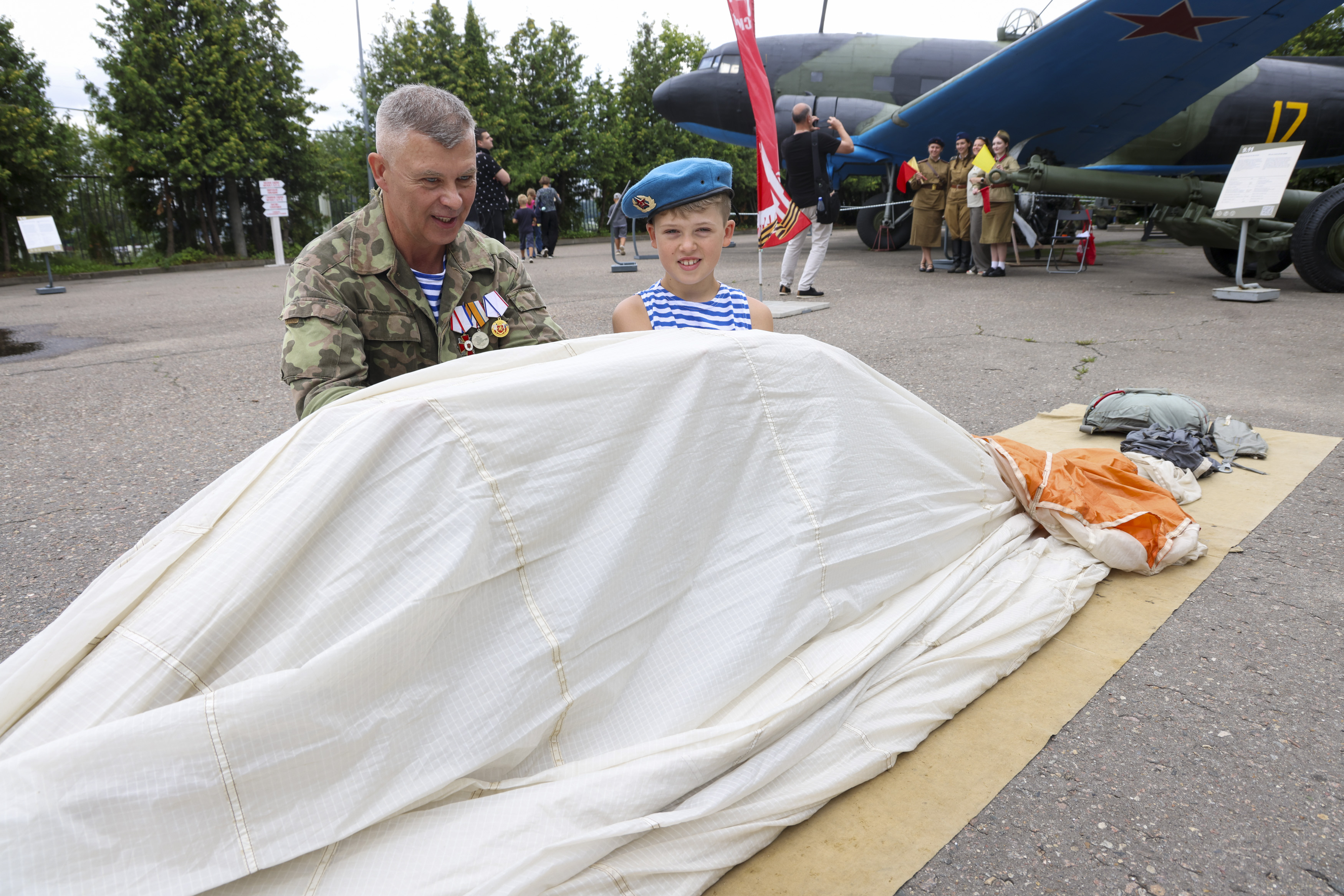 В музее «Г.О.Р.А.» в авиационной локации под крылом легендарного самолета Ли-2 посетители могли больше узнать о парашютах ВДВ.