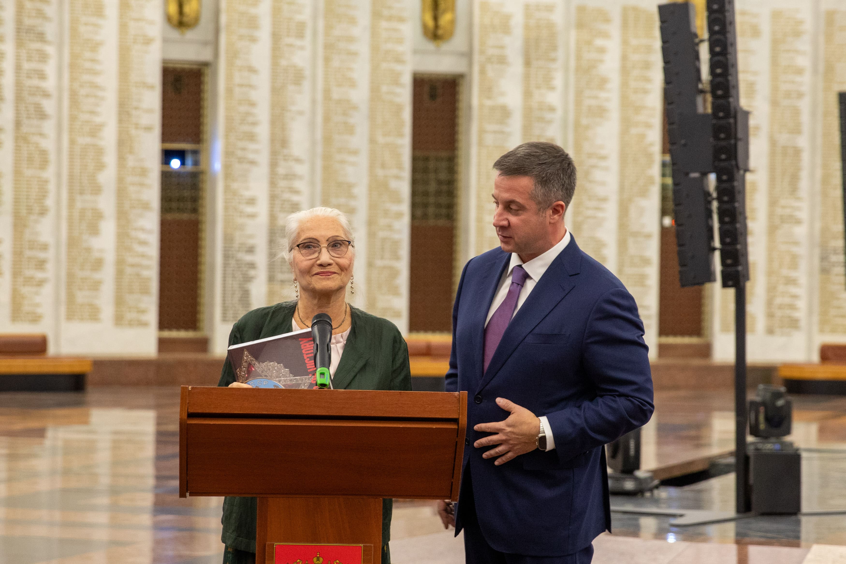25 сентября в Зале Славы Музея Победы прошла торжественная церемония передачи книги «Орден «Победа». Неизвестные страницы». Ее выпустили на английском языке в честь 80-летия Победы в Великой Отечественной войне. Перед началом церемонии участники возложили цветы к монументу «Скорбь» в Зале Памяти и Скорби и посмотрели светозвуковую инсталляцию «Дорога к Победе».