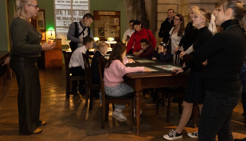 На экскурсии по экспозиции «Подвиг Народа» посетители узнали, как актеры, певцы, артисты балета, режиссеры, сценаристы, музыканты и писатели вдохновляли своим творчеством в годы войны. Гид рассказал, как создавались агитбригады и даже фронтовые театры, как артисты крупнейших театров страны выезжали на передовую.