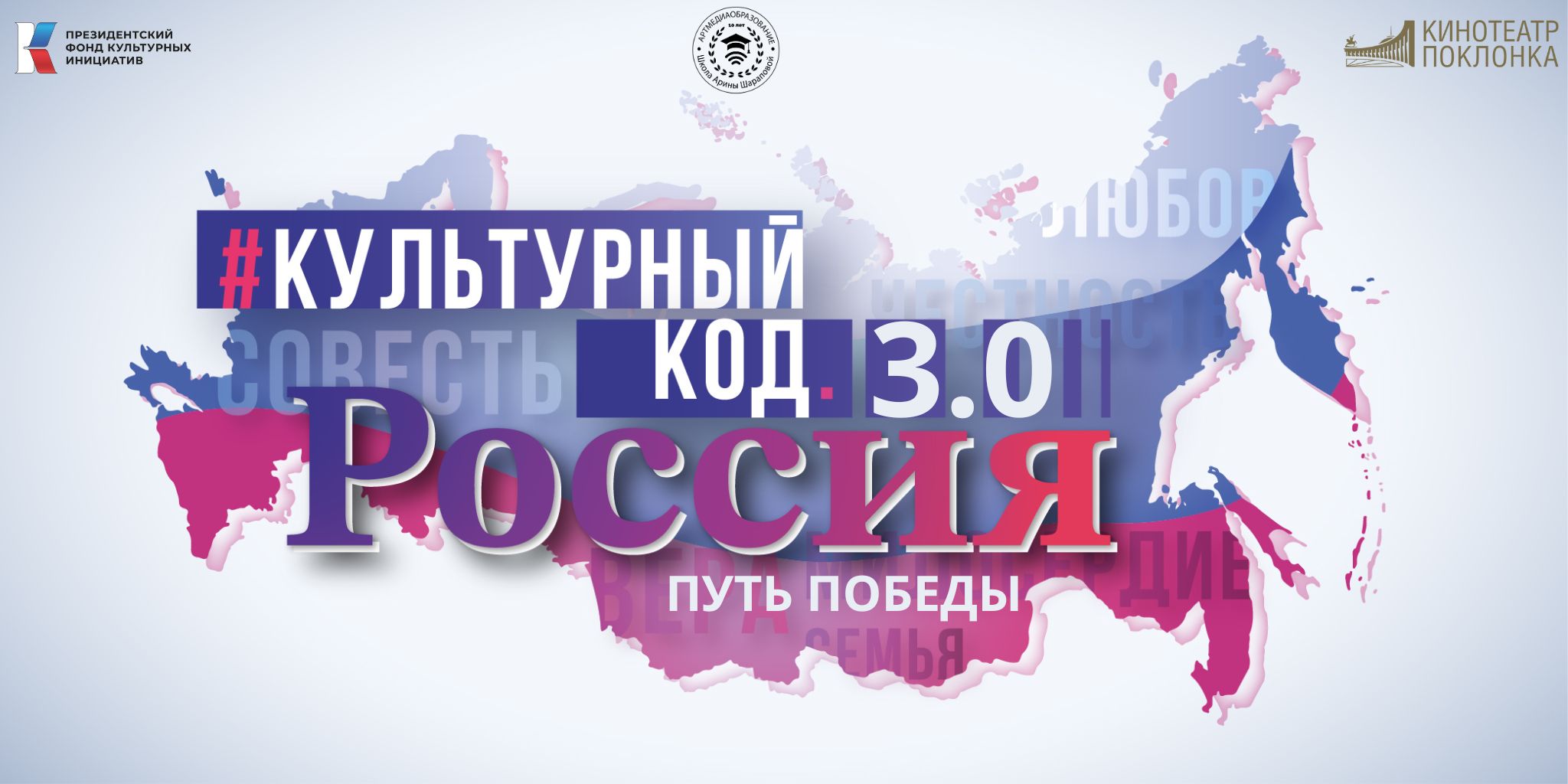 В рамках проекта школа Арины Шараповой «Артмедиаобразование» представит два короткометражных документальных просветительских фильма – «#Культурный код. Россия в искусстве» и «#Культурный код. Россия в традициях». Зрители увидят истории, посвященные героическим защитникам Брестской крепости, непокоренному Ленинграду, городам-героям – Москве, Волгограду Севастополю, Одессе, Керчи, Новороссийску, Минску, Туле, Мурманску, Смоленску, Киеву.