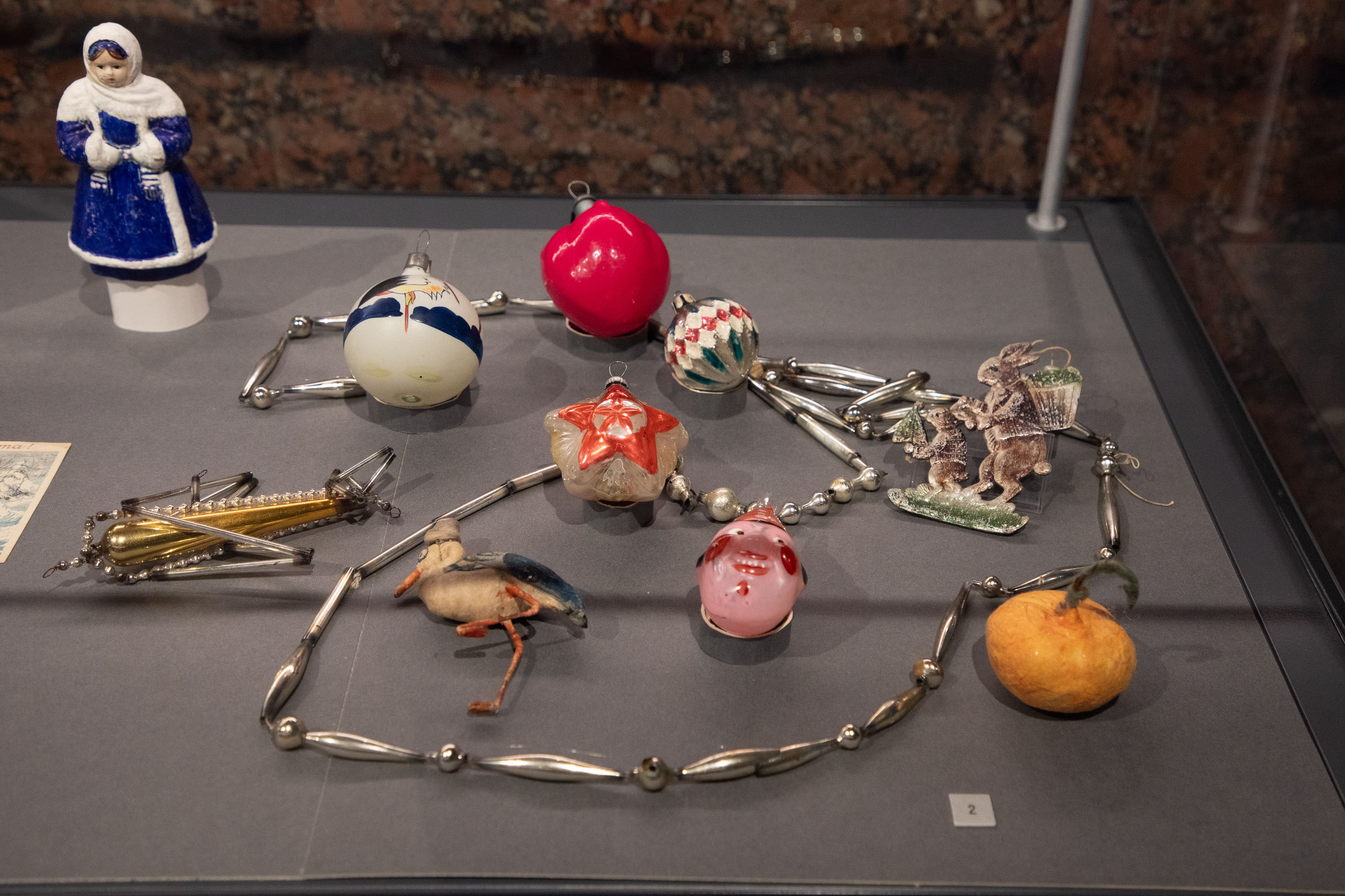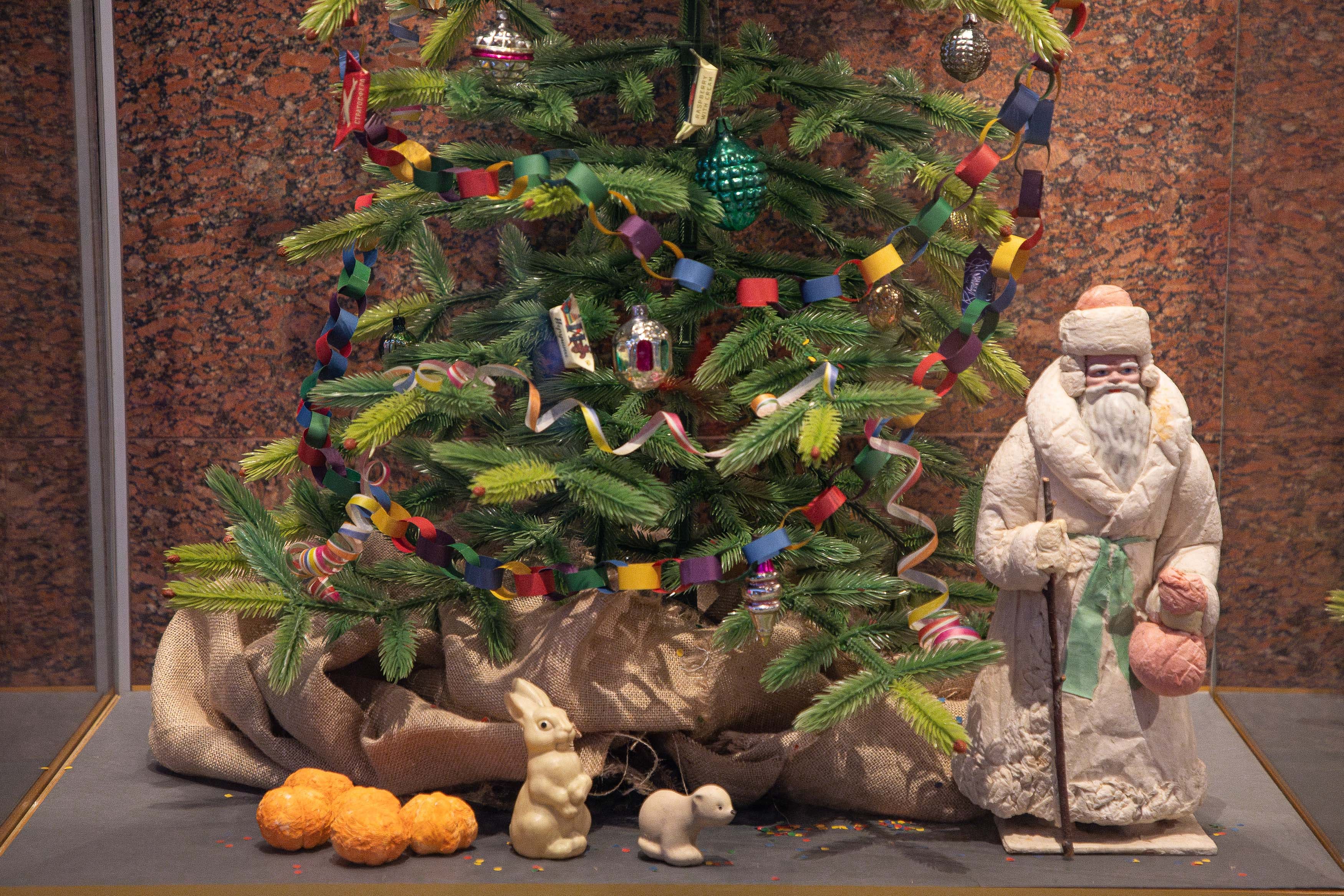 В выставку войдут всего более 70 экспонатов из фондов Музея Победы и Российской государственной детской библиотекой. Посетители увидят ёлочные игрушки в виде героев детских книг, созданные в 1930-1950-е годы. В экспозиции представят не только традиционные стеклянные ёлочные украшения, но и ватные игрушки, которые в 1930-е годы изготавливались мастерами чаще всего вручную, картонные игрушки, которые появились из-за дефицита других материалов, а также игрушки ручной работы из мишуры, проволоки, стекляруса и синельки, например необычное елочное украшение «Букет цветов». В витринах покажут игрушки по эскизам художницы-кукольницы Маргариты Димзе, они, без преувеличения украшали каждую советскую ёлку и до сих пор знакомы очень многим. Примечательно, что большая часть игрушек — очень «мирные» и добрые персонажи. Так, посетители Музея Победы увидят животных — героев народных сказок, сказочную Алёнушку, мужичка с ноготок и других персонажей, а также ватного Деда Мороза. Часть украшений отражает вехи развития и достижений СССР.