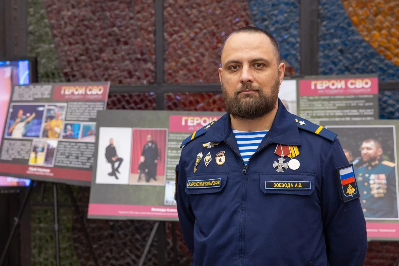 «Я с первых дней нахожусь в зоне спецоперации, подписал контракт с 10-й бригадой спецназа. 25 мая 2022 года при выполнении боевого задания получил тяжелое ранение в результате подрыва мины. Восстановился, снова вышел на службу. Повоевал какое-то время. Вернулся домой при направлении на очередную операцию для восстановления ног и попал в ДТП. Опять был переломан. Снова восстановился и вернулся к своим боевым товарищам. Семья, конечно, переживает за мое здоровье. Говорят: «Хватит, уже отвоевал свое». Но я считаю, что, коль выбрал стезю, по ней надо и идти», — поделился один из героев выставки, участник СВО гвардии ефрейтор Александр Воевода.