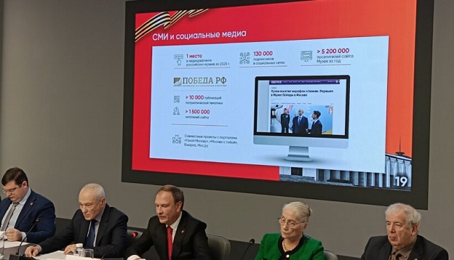 Также Александр Школьник отметил, что агентство новостей «Победа РФ» продолжает успешно работать. За 2025 год им было выпущено около 10 тысяч публикаций патриотической тематики, из них — более 100 полноценных интервью с гостями музея, учениками Академии Музея Победы, участниками форумов и конференций, в том числе и участниками СВО. Среднее количество посетителей сайта агентства в 2025 году составило около 1,5 миллиона человек.
