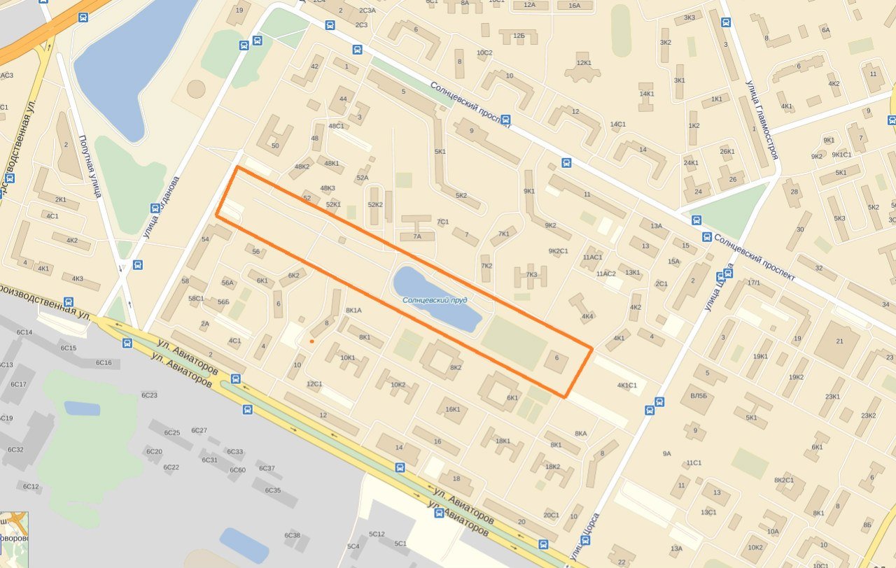 Территорию от Малого Солнцевского пруда до улицы Щорса засадят деревьями и кустарниками, разобьют газоны, а также проложат дороги и тропинки.