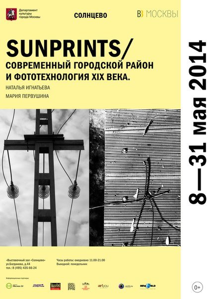 C 8 мая по 31 мая 2014 г. в Выставочном зале «Солнцево» пройдет выставка SUNPRINTS, в которой художники представят современный московский район Солнцево через призму фототехнологии XIX века – цианотипии. Куратор: Лариса Климова – архитектор-дизайнер.