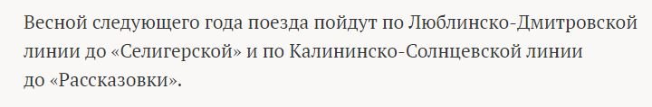Стройкомплекс Москвы, со ссылкой на сайт мэра Собянина рассказал о планах по запуску Калининско-Солнцевской линии до станции Рассказовка. Линию планируется запустить следующей весной, а это, "примерно" март или апрель или май. На новом 15-километровом участке желтой ветки метро откроется семь станций: «Мичуринский проспект», «Очаково», «Говорово», «Солнцево», «Боровское шоссе», «Новопеределкино» и «Рассказовка».