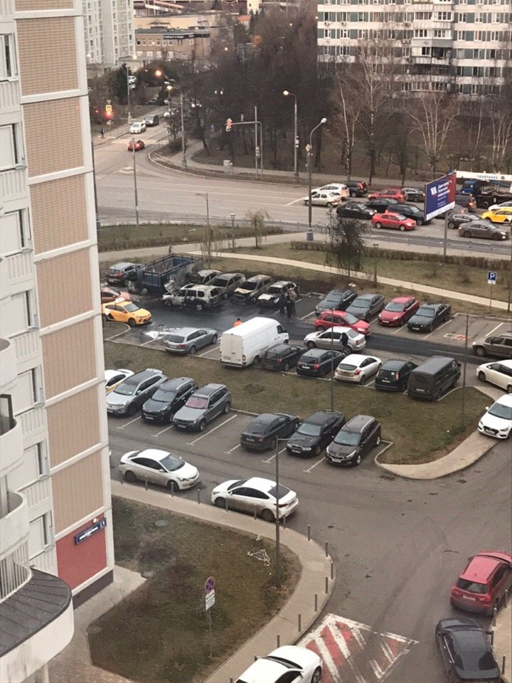 Московский, ЖК Первый Московский город Парк. Как сообщает одноименная группа, ночью несколько автомобилей сгорело на глазах у жителей. ЧП произошло по адресу угол улиц Москвитина и Атласова.