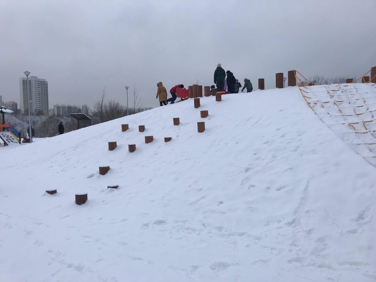Не смотря на зиму, снег и декабрь, парк на Лукинской улице продолжает строиться.