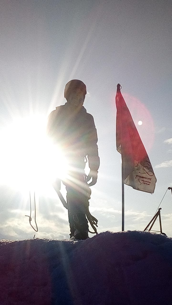Направление для восхождения было выбрано перпендикулярное, траверсом, то есть «зигзагами с небольшим уклоном». Спустя время, когда ребята достигли вершины погода наладилась, тучи ушли и вышло теплое солнце.