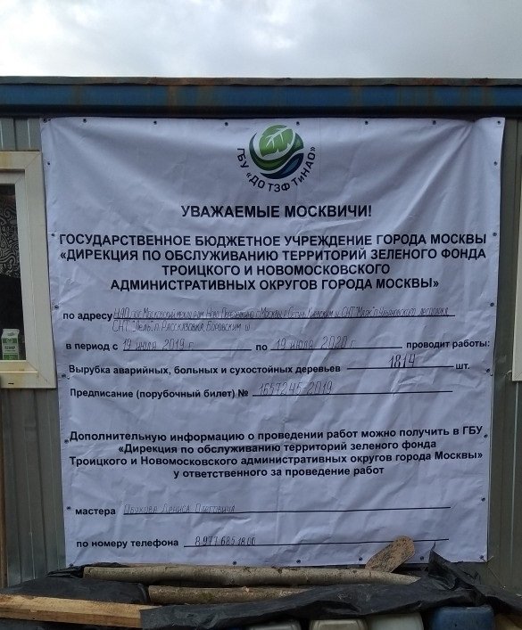 Внезапно уборка сухостоя, которую проводит ДО ТЗФ ТиНАО, превратилась в прорубание НОВЫХ просек, которое невозможно без вырубки живых деревьев.