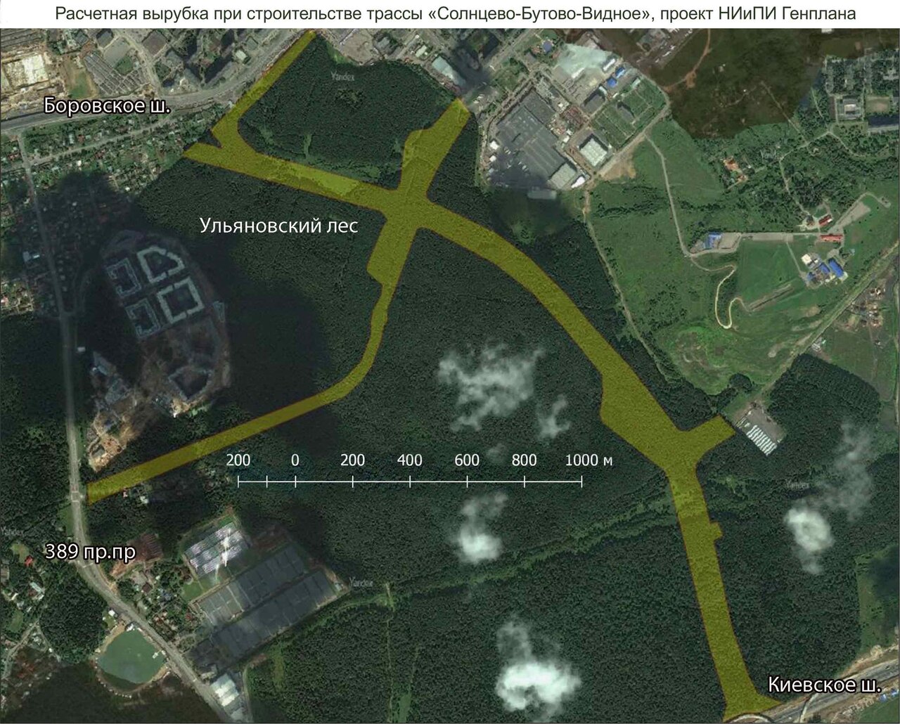 Работы по вырубке деревьев в лесу на май от Киевского шоссе — пост от 31/05. Также ранее опубликованы рендеры путепровода в Ульяновском лесопарке и эстакады над Боровским шоссе.