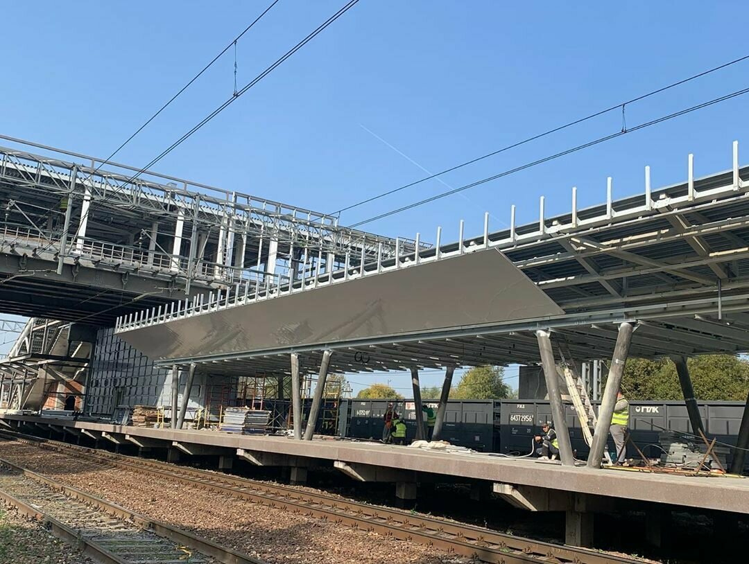 AFK Leader монтирует алюминиевые панели RWP 250 и RWP 250H, а также витражное остекление на обоих сходах и пешеходном переходе, утепляется и монтируются алюминиевые панели на пешеходном переходе.