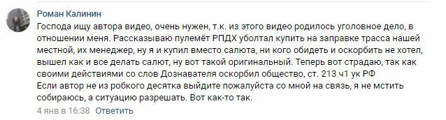 Автор «пулеметной очереди» 5 января рассказал о заведении на него уголовного дела по ст. 213 ч.1 п «а».