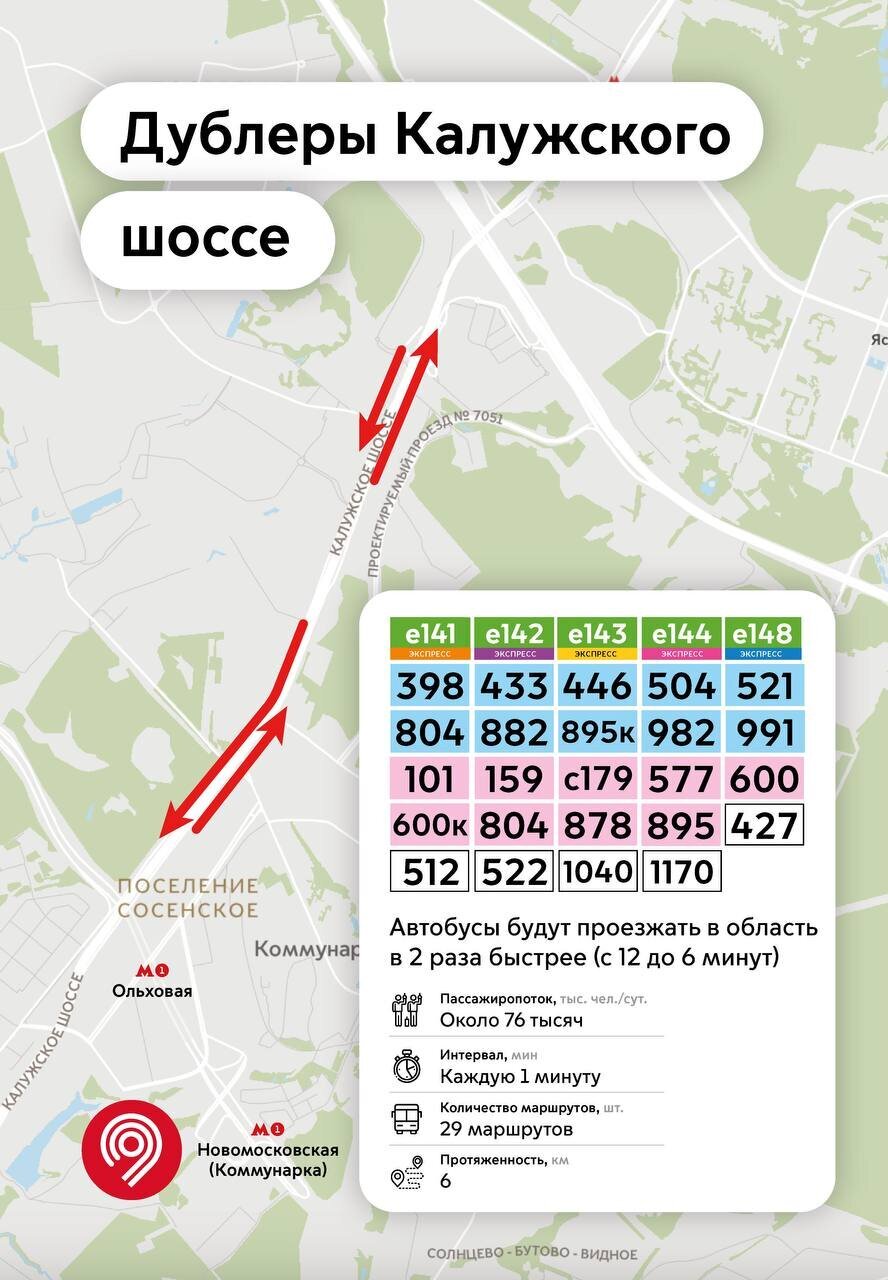 Выделенные полосы заработают в районах Филимонковский и Коммунарка Новомосковского АО с 12 октября. Пассажиры смогут ездит с ветерком в автобусе около станции метро Потапово на СБВ, в Московском и на Калужском шоссе. Подробнее на схемах.