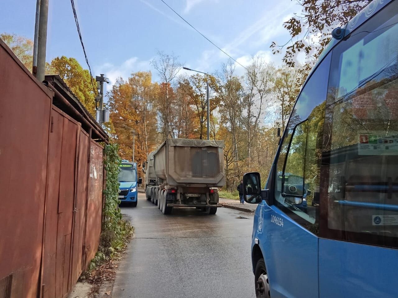 Обновление 21.10: И большие и малые автомобили, а также маршрутки едут через СНТ Дружба. Фото от Марушкино.