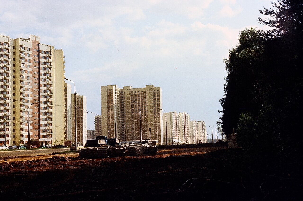 Вид с балкона дома 29к1 по Боровскому шоссе на улицу Приречная. Здесь виднеется большая речка на которой зимой можно было кататься на коньках.