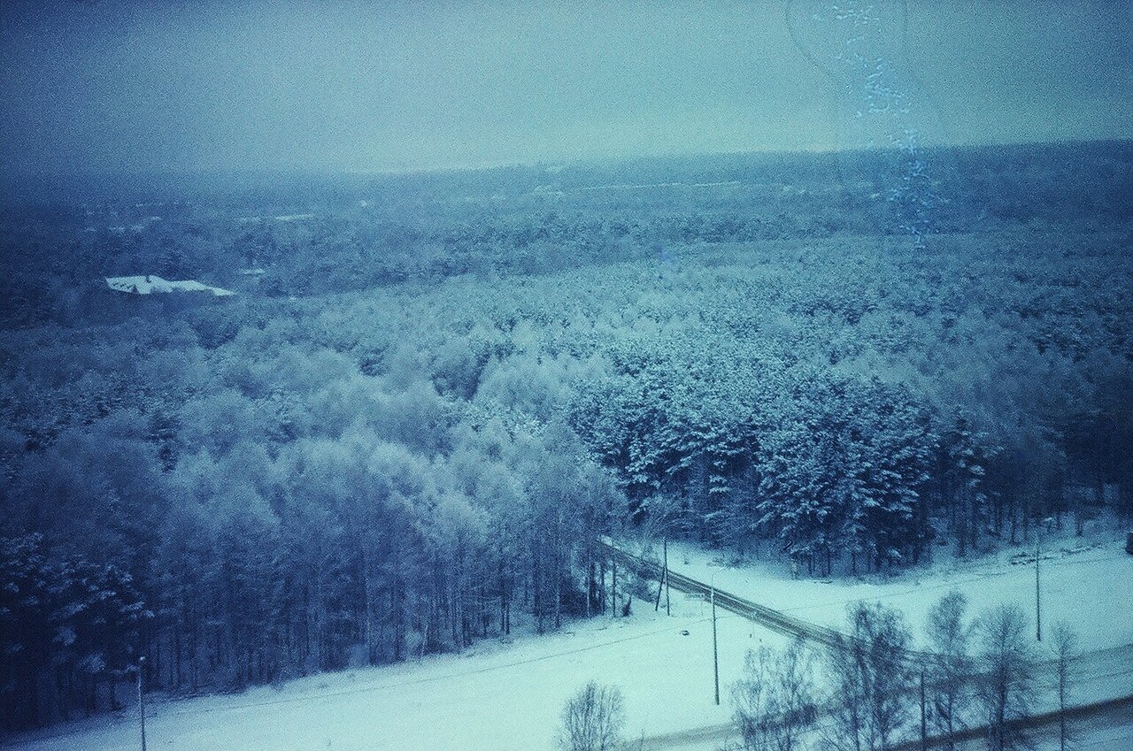 Красивый зимний вид на Чоботовский лесопарк и дорогу к станции Переделкино. На фото попало здание школы, которое все никак не могут вернуть к жизни в другом обличии.