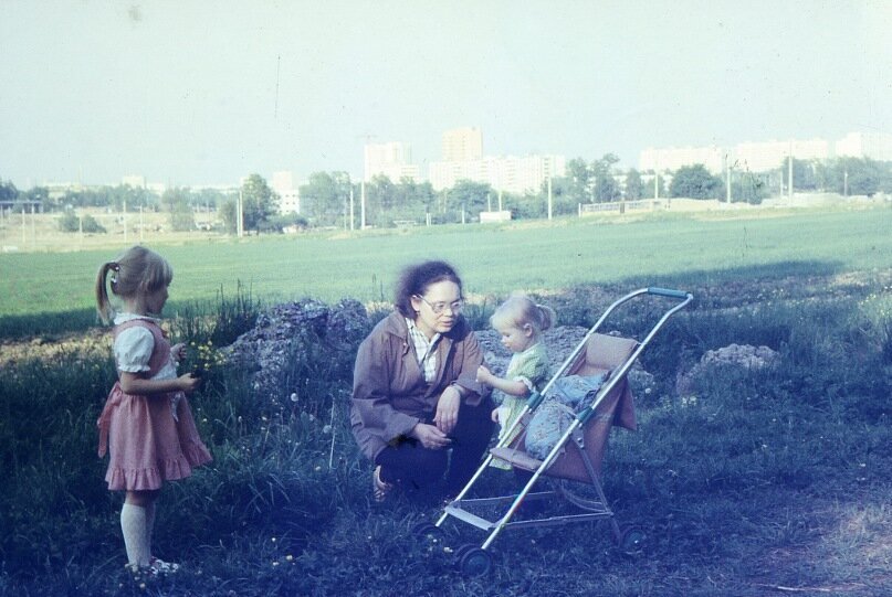 Дочь Сергея, Марина. На фото в зеленом платье у коляски вместе мамой и сестрой. Съемка около поля и остановки Чоботы, где сейчас стоят дома.
