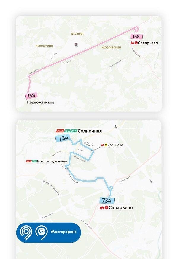 Курсируют между станцией метро «Саларьево» и станцией Солнечная МЦД в Солнцево.