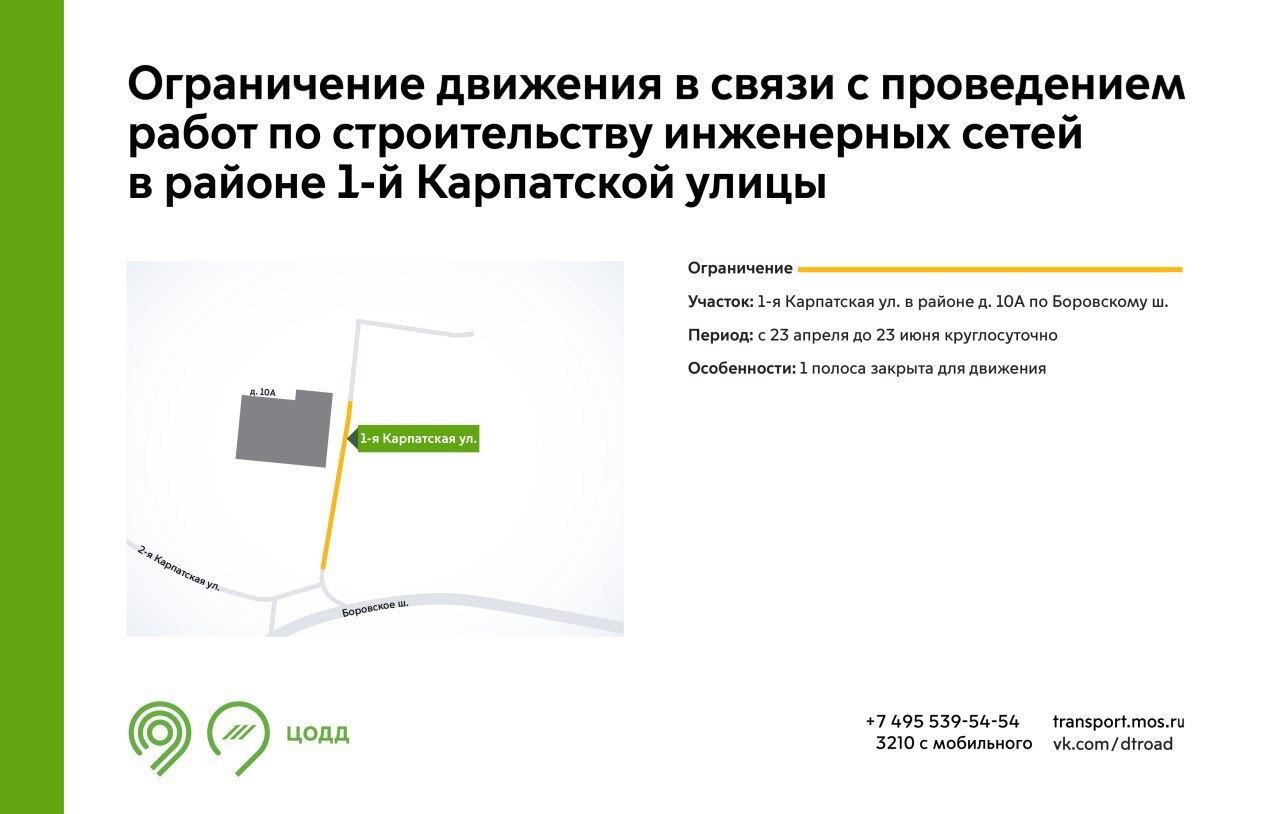 Ранее, на участке 1-й Карпатской улицы анонсировались работы строительству инженерных сетей, с 23 апреля до 23 июня.