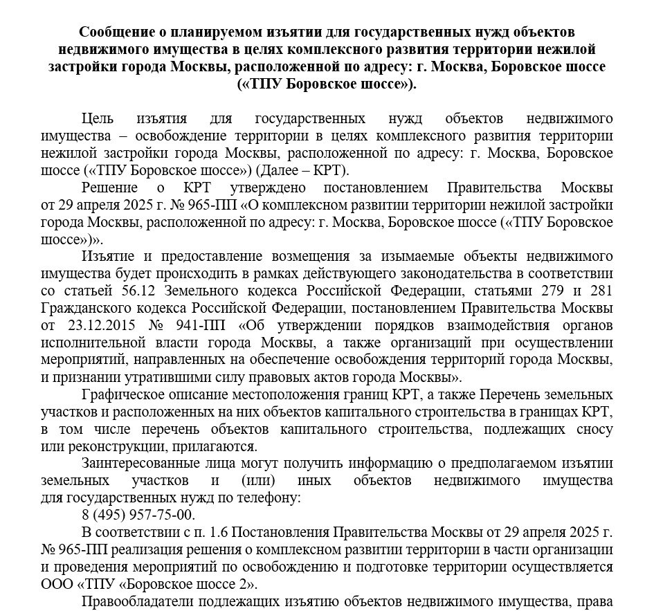 Историю очень долгого вопроса о создании Транспортно-пересадочного узла «Боровское шоссе», можно почерпнуть из поста о том, что постановление о наконец-то было подписано. Здесь планируется 138500м2 недвижимости на 8,77 га.