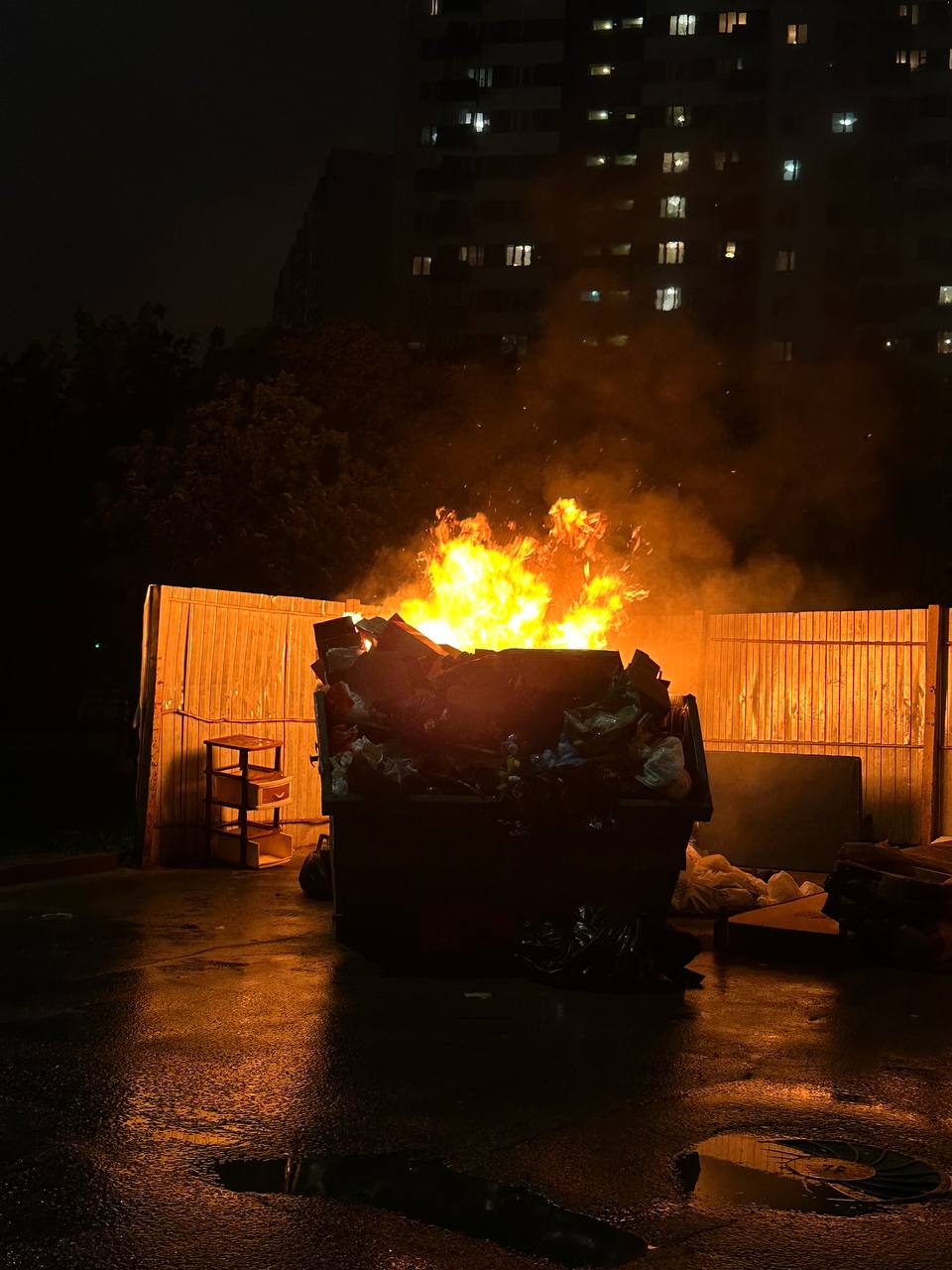 Контейнер начал гореть в районе десяти вечера, вблизи дома 25 по Боровскому шоссе.