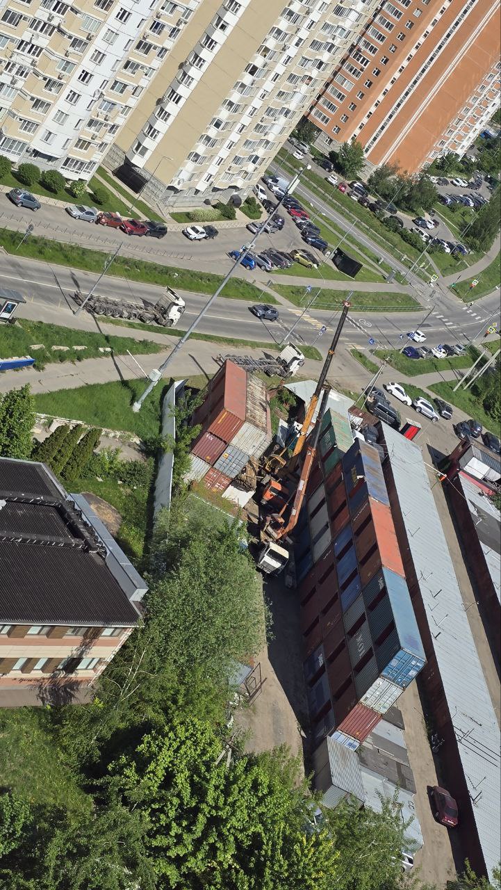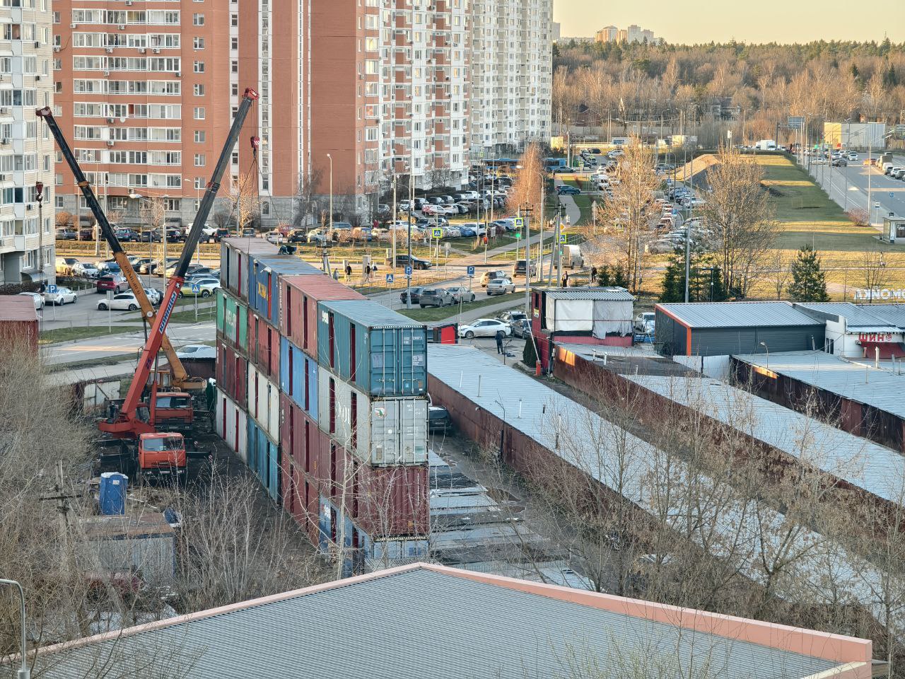 Второго апреля на территорию одного из ГСК на ул. Федосьино завезли большое количество контейнеров. Выстроили башню и уехали. Активные жители сразу забили тревогу — кому это, что это, не упадут ли, и вообще, законно ли это?
