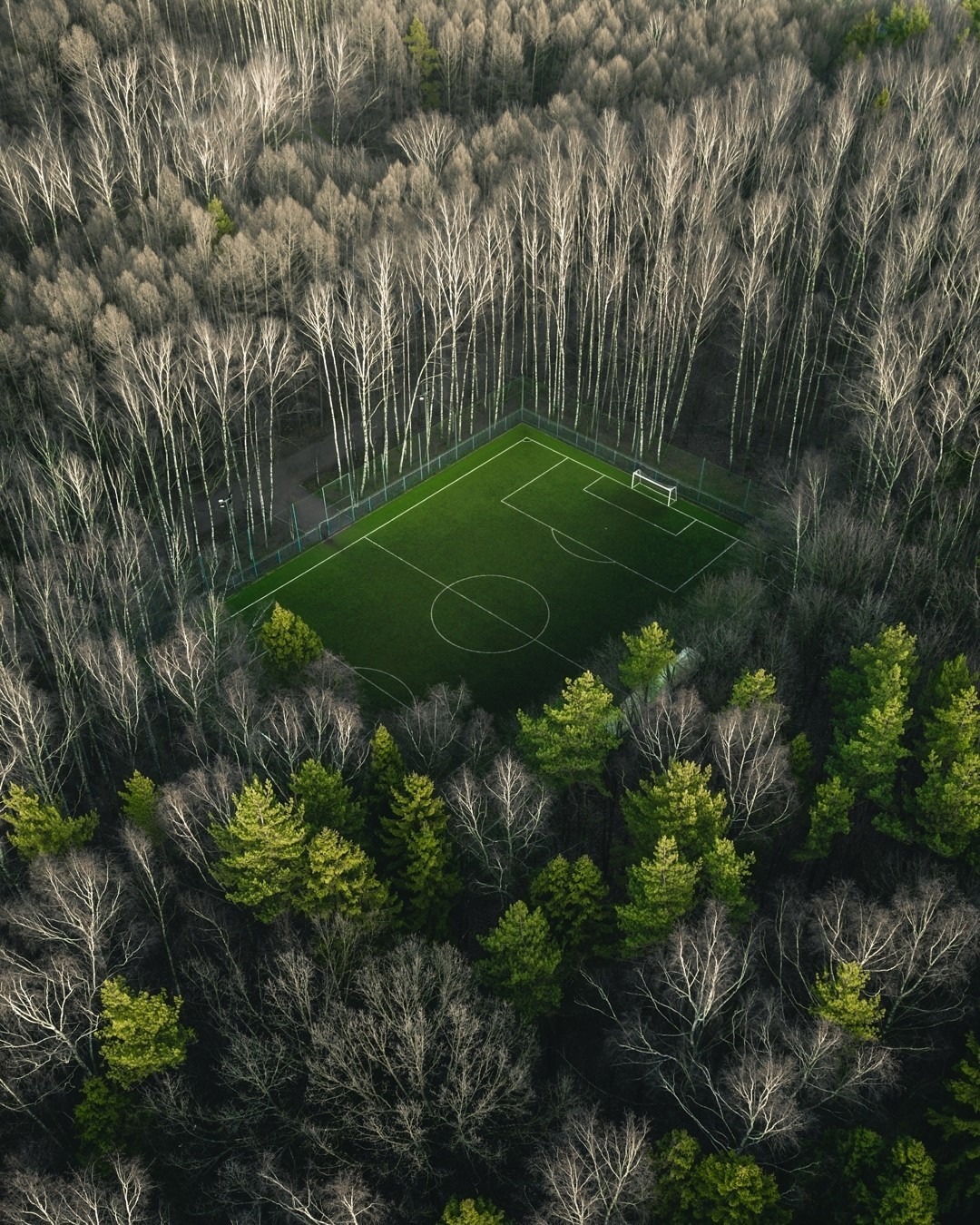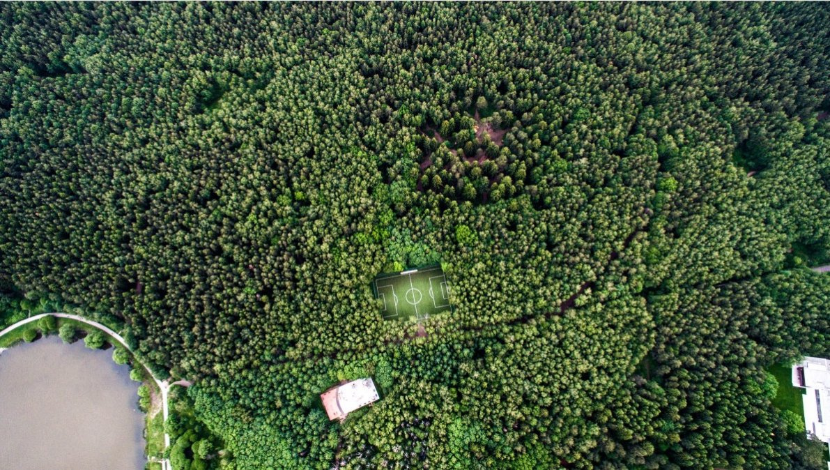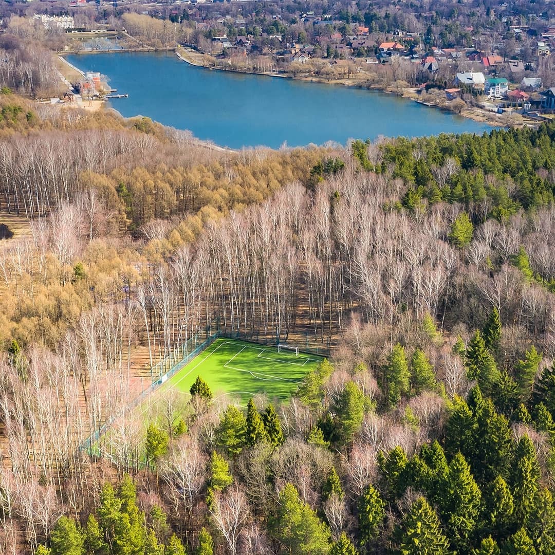 Футбольное поле в Мещерском парке первый раз привлекло внимание жителей столицы в далеком 2016 году. Именно тогда, кто-то сделал фотографию с дрона и разместил ее в интернете. С тех пор, вот уже почти 10 лет, каждый уважающий себя владелец дрона обязан сделать новое видео и фотографию спортивной площадки.